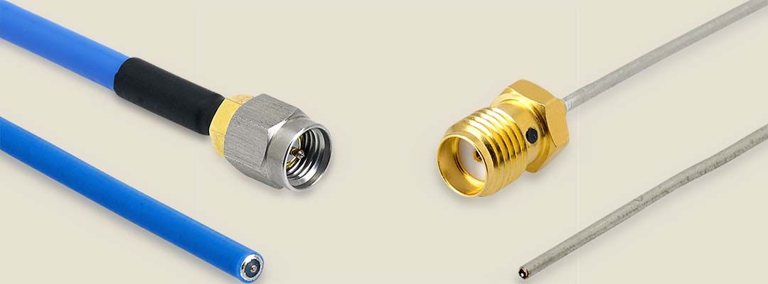 There are various coax options available, from semi-rigid, conformable, jacketed conformable and even flex cable. The most common choices are semi-rigid coax in either .034 or .047 inches in diameter, for the reason that the center conductor is still small enough to attach to small traces, yet not so small that it becomes difficult to trim the coax. Here are just a few of the coax options available: