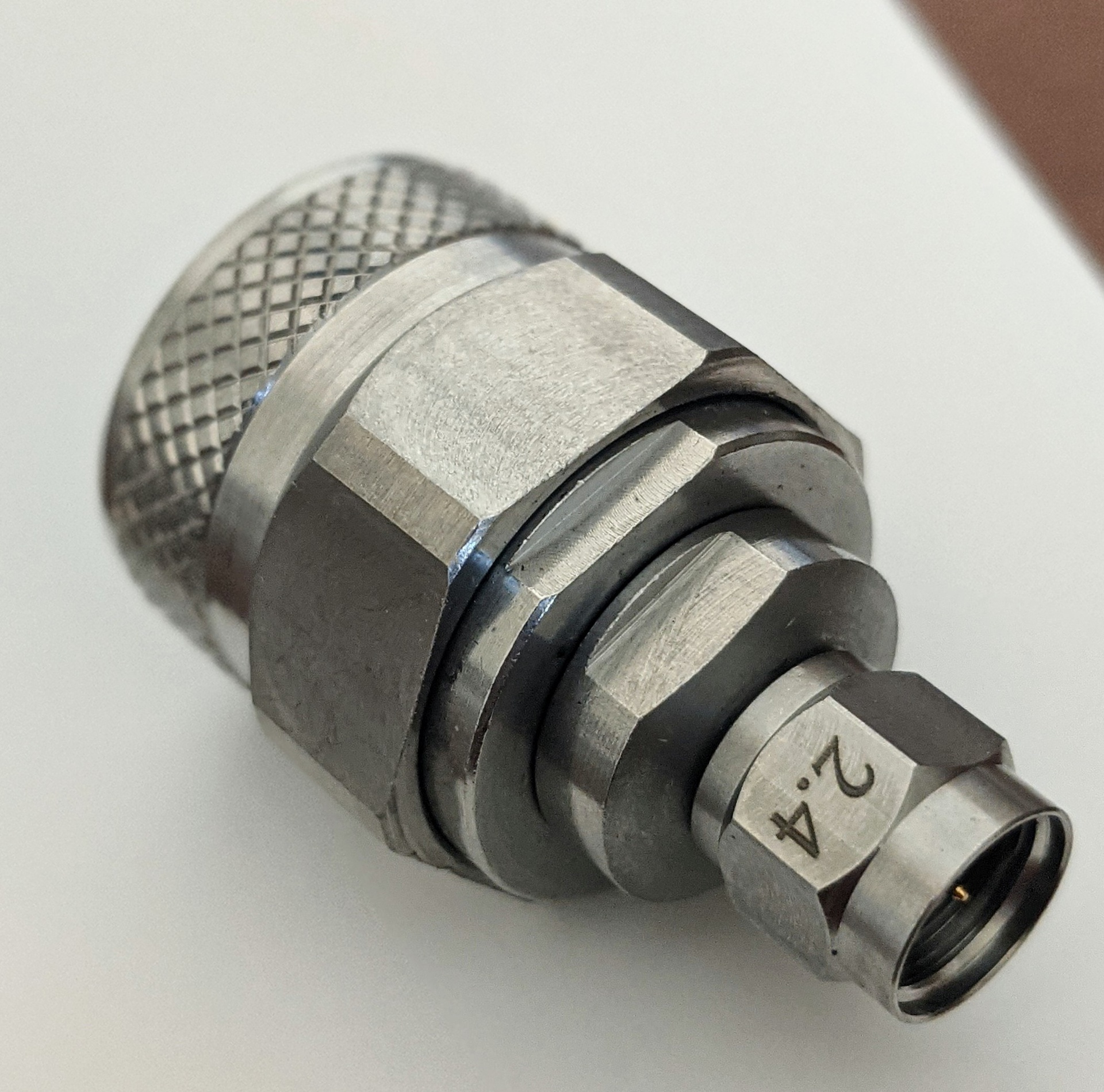 RF Adapter, 2.4mm male to N male. Frequency DC-18 GHz. VSWR 1.15 max.