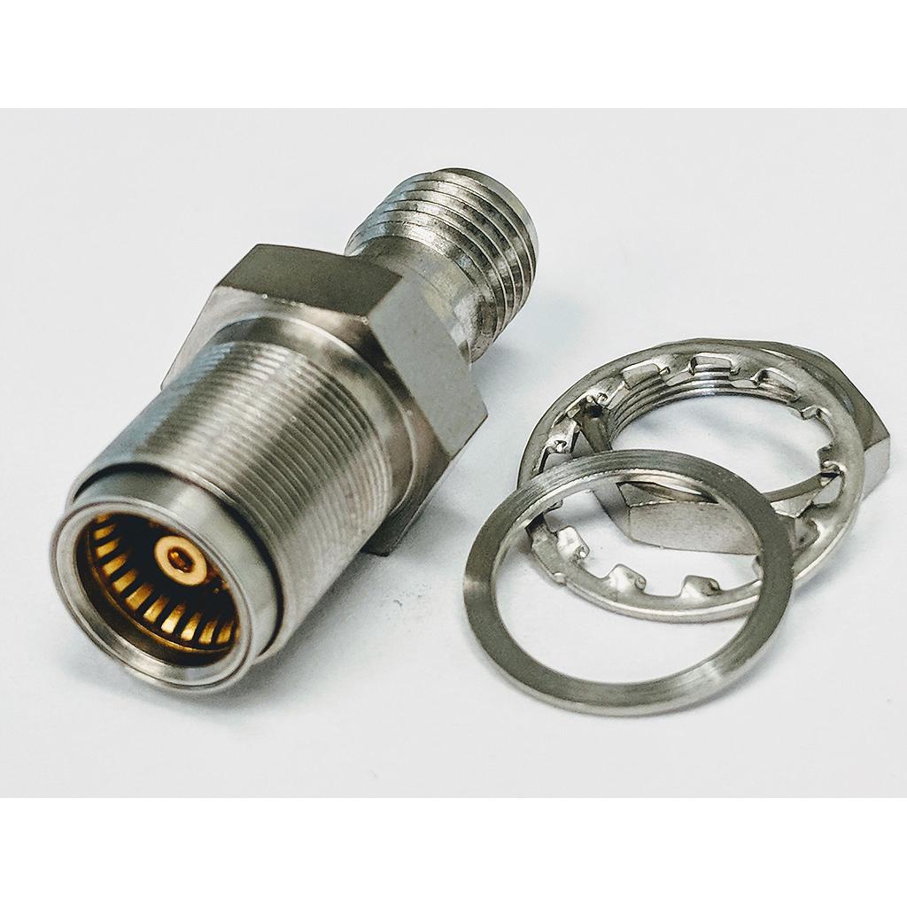 P1dB's P1AD-SAFBMFBD is a 50 Ohm RF adapter, SMA female(jack) to BMA female(jack), bulkhead mount. This adapter operates to 18 GHz with a max VSWR of 1.20.