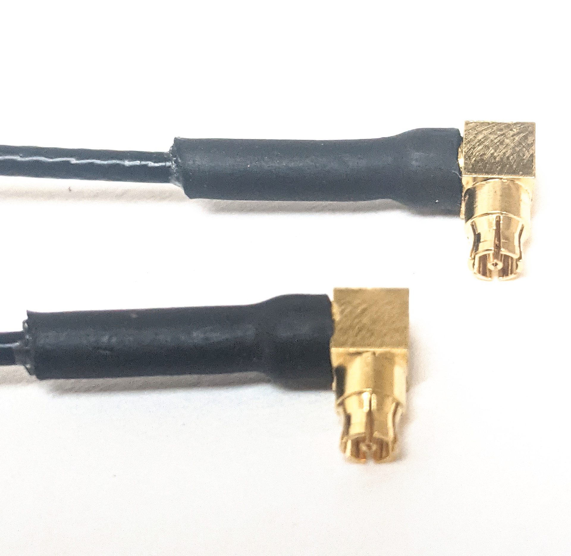 Cable Assembly, SMPM female right angle to SMPM female right angle, 1.37mm flex, 3.3 inch. Designed to mate with receptacle 3211-40024.