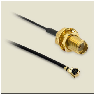 Cable Assembly, SMA Female to W.FL2 (Low Profile) Right Angle Plug, 0.81mm diameter flex, 4 inch. Frequency DC to 6 GHz. Height 1.14mm when mated.