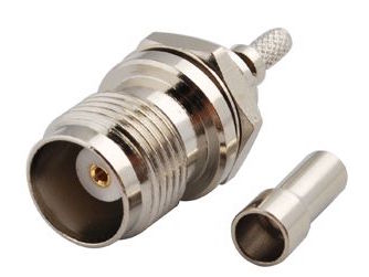 SMA Female Connector, Bulkhead, Passivated Stainless Steel Body for RG-58, LL195, LMR195 Coax. Limited to stock on hand.