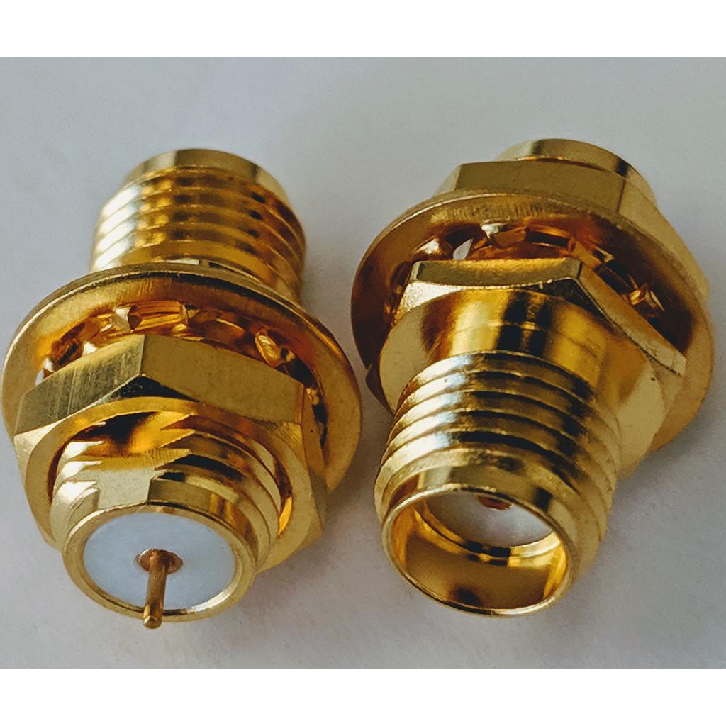 SMA Female Bulkhead Connector with .050 inch diameter contact pin.